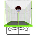 10ft by 17ft Rectangule Trampoline with Green Fabric Black Powder-coated Galvanized Steel Tubes with Basketball Hoop System Advanced Ladder