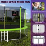- Solid Structure-5 foam padded poles to support UV-proof safety trampoline enclosure net for maximum safety while jumping. Heavy duty 3-step galvanized steel ladder offers convenient maneuverability in and out of the trampoline.