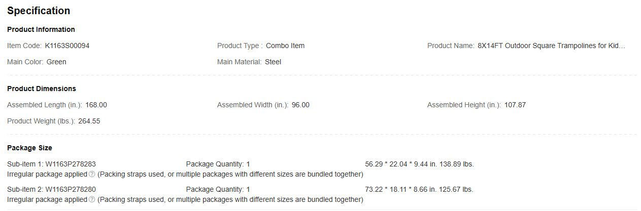 • 100% Satisfaction Service-One order gets all accessories .The specific assembly steps are shown in picture form which is easy for you to understand. This trampoline comes in 2 large boxes, if the box arrives damaged or parts missing, contact us and we will reply in time.