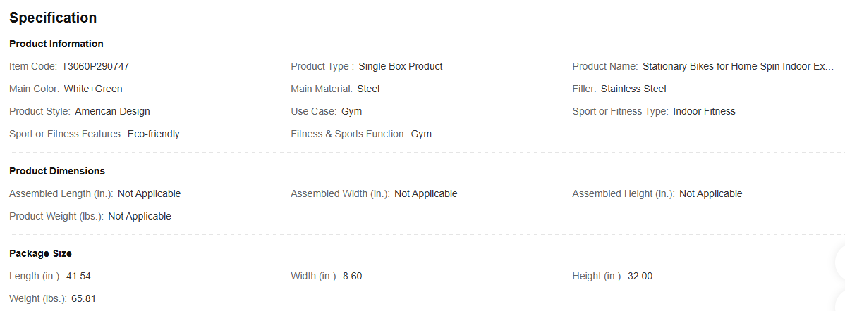 Flywheel: 35lbs Product Weight:66lbs Maximum User Weight: 330lbs Adjustable Magnetic Resistance Digital Monitor and Tablet bracket Appropriate Height: Fits 5’1” to 6’5” tall 1.5mm High-density Steel Tube and Precise Welding. NO WOBBLY!